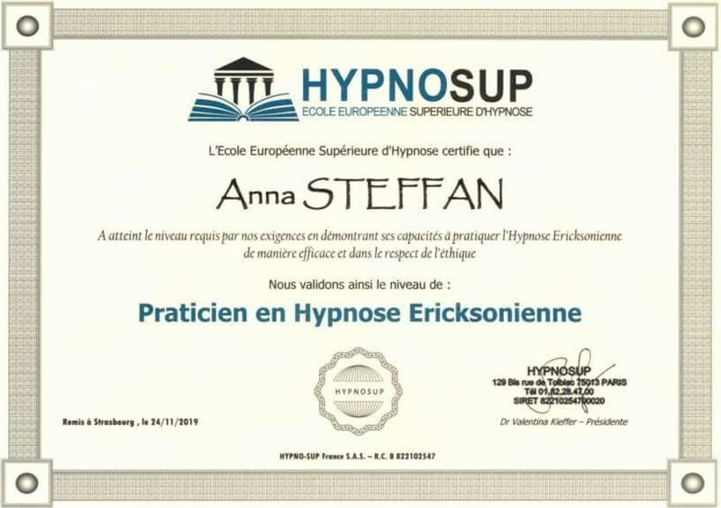 Ma curiosité autour du subconscient m’a conduit à l’École Européenne Supérieure d’Hypnose. Où j’ai obtenu une certification de la NGH (National Guild of Hypnotists). Une organisation internationale de renom en matière d’hypnose.