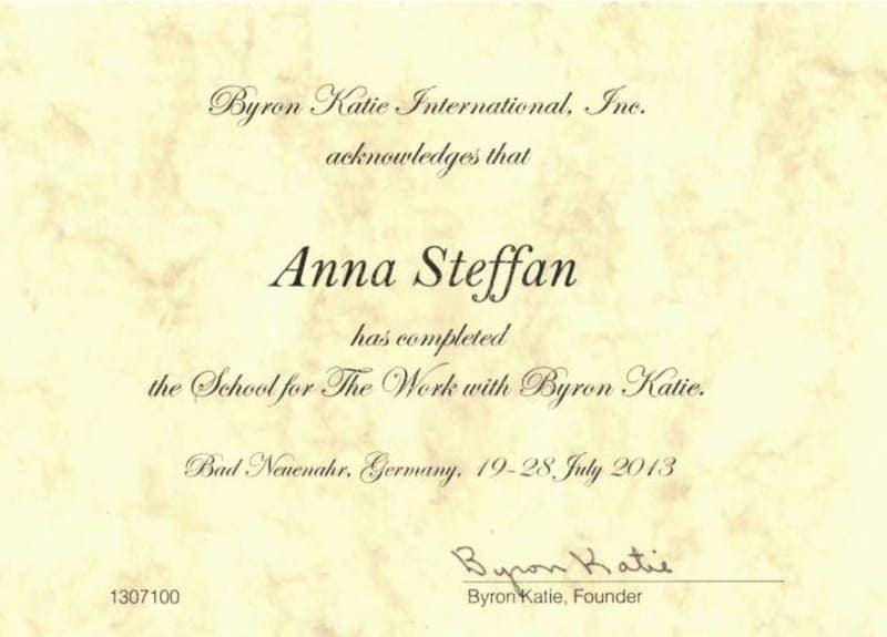 J’ai également étudié avec Byron Katie l’auteur de la méthode « The Work ». En tant que facilitatrice « du travail » de Byron Katie, je constate à quel point nos pensées influencent nos vies.